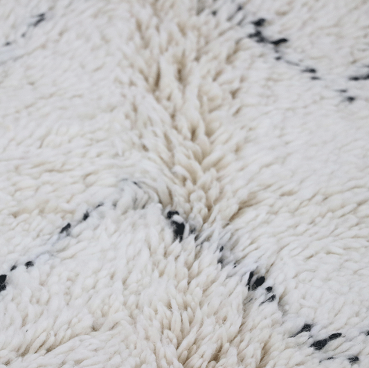 Jeder Beni Ourain Teppich wird aus reiner Schurwolle handgeknüpft. Die Wolle stammt von robusten und glücklichen Hochland-und Weideschafen aus der Region. Durch die sorgfältige Handwäsche, ggf. Färbung und Verarbeitung durch erfahrene Berber-Familien erhaltet ihr nicht nur ein außergewöhnlich langlebiges Produkt, sondern auch ein nachhaltiges und umweltfreundliches Wohnaccessoire, welches sich für natürliches, ökologisches Wohnen eignet. Sowie auch für besondere Raumkonzepte wie das Feng-Shui.