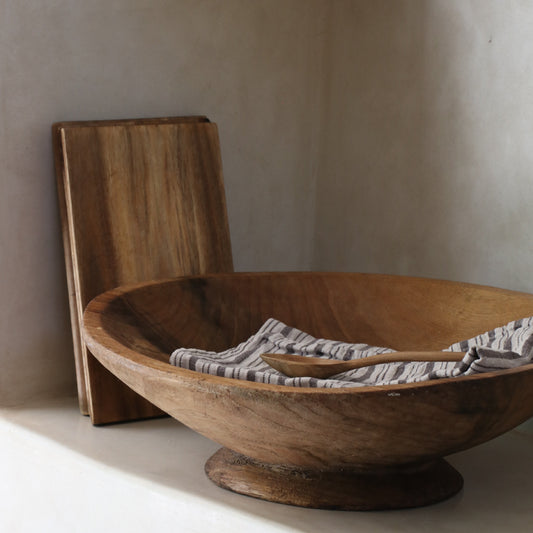 Unsere Holzobjekte entstehen in traditioneller Handarbeit, Stück für Stück gefertigt aus marokkanischem Walnuss- und Olivenholz.