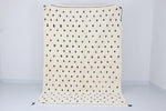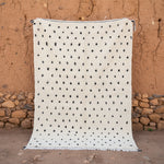 Handgefertigter marokkanischer Wollteppich mit schwarzen Punkten. Der marokkanische Teppich aus der Region Azilal besticht durch sein fröhliches Design.