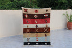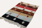 Das Design des Teppichs ist klassisch und sehr bekannt in der Region, es zeigt die Abschnitte eines Lebens oder Lebensbereiche mit unterschiedlichen Berbersymbolen (Themen).