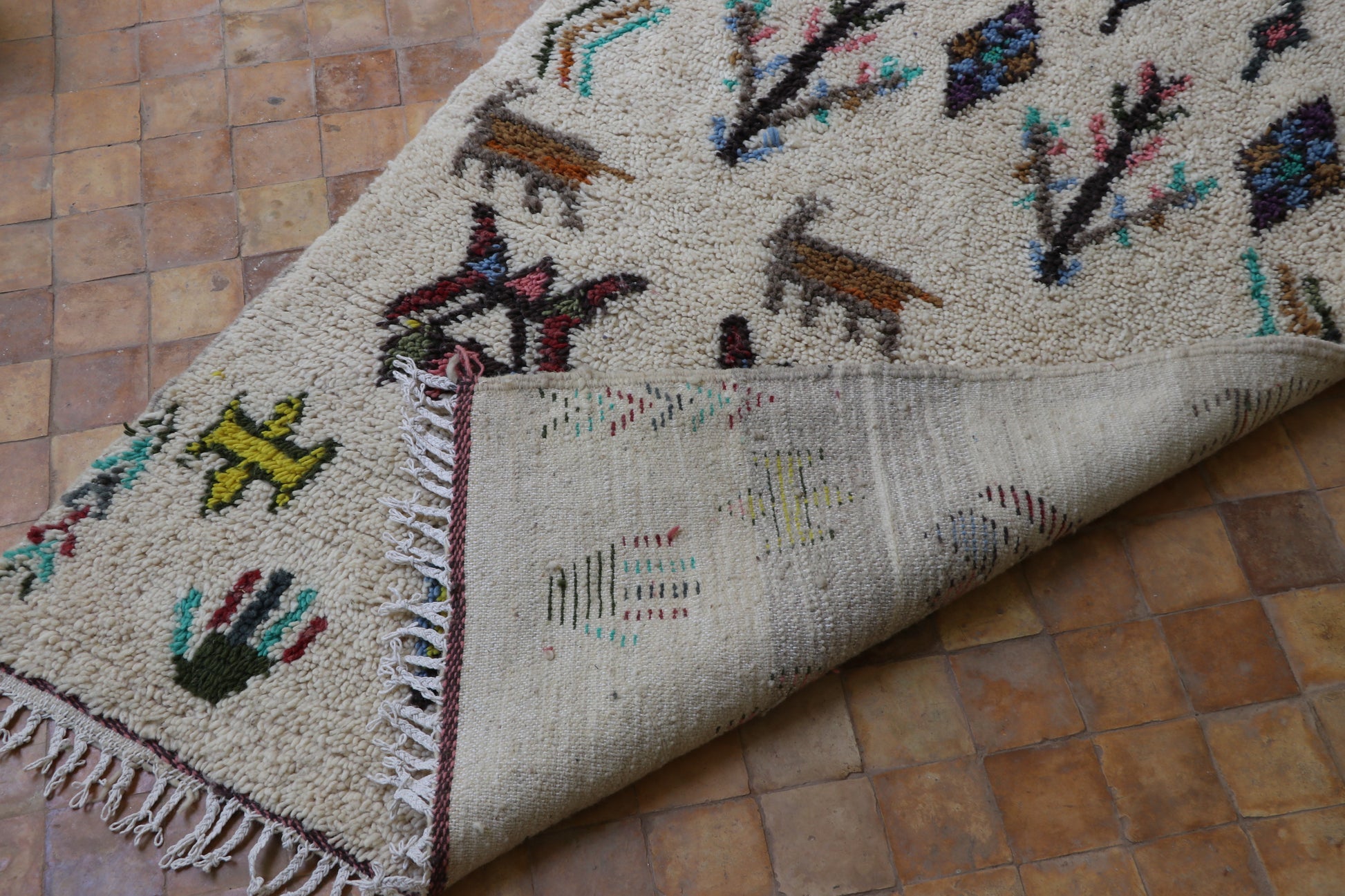 Pflege Wollteppiche (Beni Ourain, Beni Mrirt, Azial): Die Teppiche können ohne rotierende oder klopfende Bürsten abgesaugt werden. Wir empfehlen den Teppich gelegentlich auszuklopfen oder auszuschlagen, das entfernt effektiv Staub und Schmutz und der Teppich sieht wieder wunderbar frisch aus.