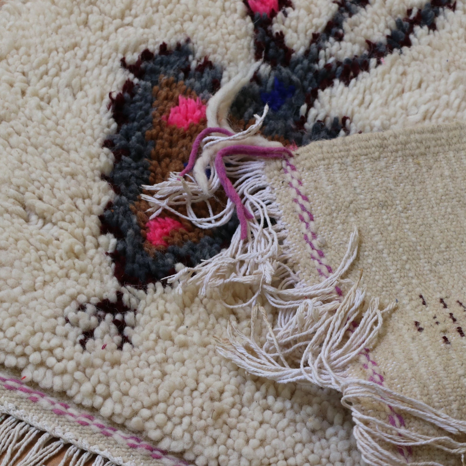 Pflege Wollteppiche (Beni Ourain, Beni Mrirt, Azial): Die Teppiche können ohne rotierende oder klopfende Bürsten abgesaugt werden. Wir empfehlen den Teppich gelegentlich auszuklopfen oder auszuschlagen, das entfernt effektiv Staub und Schmutz und der Teppich sieht wieder wunderbar frisch aus.