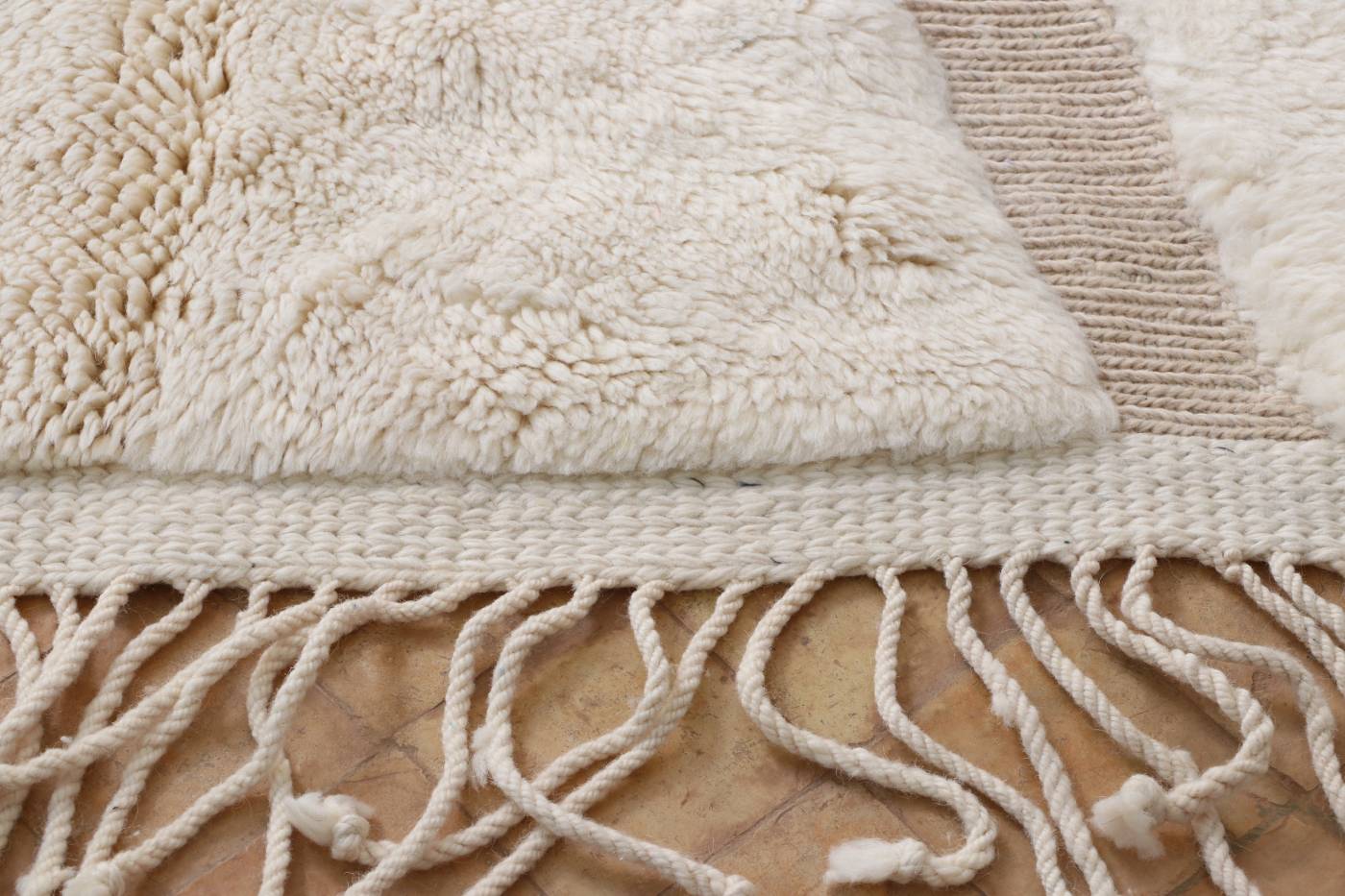 Pflege Wollteppiche (Beni Ourain, Beni Mrirt, Azial): Die Teppiche können ohne rotierende oder klopfende Bürsten abgesaugt werden. Wir empfehlen den Teppich gelegentlich auszuklopfen oder auszuschlagen, das entfernt effektiv Staub und Schmutz und der Teppich sieht wieder wunderbar frisch aus.
