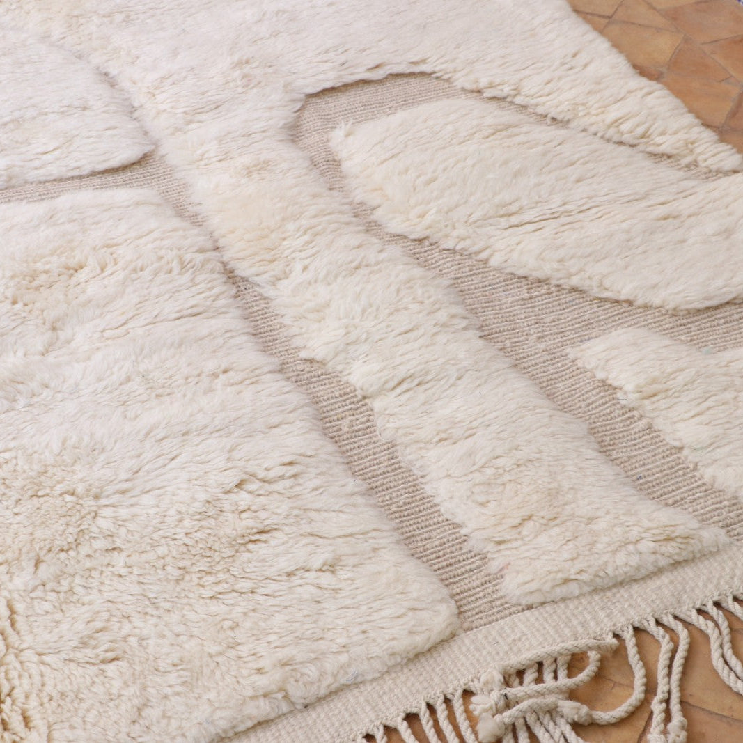 Pflege Wollteppiche (Beni Ourain, Beni Mrirt, Azial): Die Teppiche können ohne rotierende oder klopfende Bürsten abgesaugt werden. Wir empfehlen den Teppich gelegentlich auszuklopfen oder auszuschlagen, das entfernt effektiv Staub und Schmutz und der Teppich sieht wieder wunderbar frisch aus.