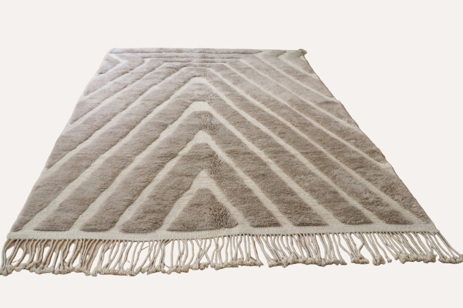 Pflege Wollteppiche (Beni Ourain, Beni Mrirt, Azial): Die Teppiche können ohne rotierende oder klopfende Bürsten abgesaugt werden. Wir empfehlen den Teppich gelegentlich auszuklopfen oder auszuschlagen, das entfernt effektiv Staub und Schmutz und der Teppich sieht wieder wunderbar frisch aus.