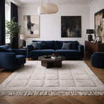 Align ist ein handgeknüpfter Berberteppich mit einem feinen Raster aus quadratischen Gravuren, das Ruhe und Struktur in jeden Raum bringt. Sein klar gegliedertes Design wirkt ordnend und zugleich weich, ein stiller Anker für moderne Interieurs.