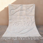 Zahra ist ein Berberteppich mit einem zart gravierten Rosenmuster, das sich weich und gleichmäßig über die Fläche legt. Sein Design verbindet organische Eleganz mit stiller Ordnung dezent, aber voller Ausdruck.