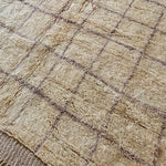 Pflege Wollteppiche (Beni Ourain, Beni Mrirt, Azial): Die Teppiche können ohne rotierende oder klopfende Bürsten abgesaugt werden. Wir empfehlen den Teppich gelegentlich auszuklopfen oder auszuschlagen, das entfernt effektiv Staub und Schmutz und der Teppich sieht wieder wunderbar frisch aus.