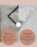 Unsere Beni Ourain Berber Teppiche werden noch traditionell, innerhalb der Berberfamilien von Hand gefertigt. Ein Traum aus besonders weicher Schurwolle, denn in der traditionellen Herstellung wird noch hochwertige Wolle von Weide-und Hochlandschafen verarbeitet. Hier entstehen einzigartige Unikate auf die ganz ursprüngliche Art. Ein Beni Ourain ist ein funktionelles Designstück, unglaublich langlebig und universell, er passt nahezu in jeden Wohnstil.