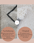 Pflege Wollteppiche (Beni Ourain, Beni Mrirt, Azial): Die Teppiche können ohne rotierende oder klopfende Bürsten abgesaugt werden. Wir empfehlen den Teppich gelegentlich auszuklopfen oder auszuschlagen, das entfernt effektiv Staub und Schmutz und der Teppich sieht wieder wunderbar frisch aus.