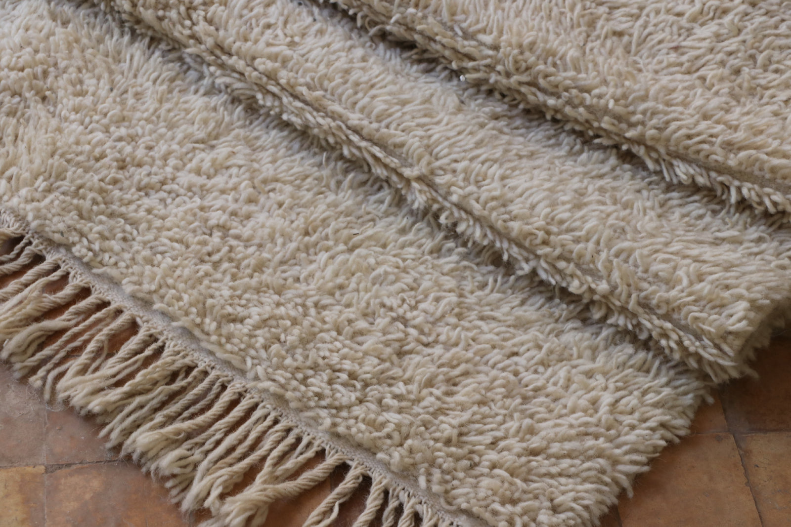 Pflege Wollteppiche (Beni Ourain, Beni Mrirt, Azial): Die Teppiche können ohne rotierende oder klopfende Bürsten abgesaugt werden. Wir empfehlen den Teppich gelegentlich auszuklopfen oder auszuschlagen, das entfernt effektiv Staub und Schmutz und der Teppich sieht wieder wunderbar frisch aus.