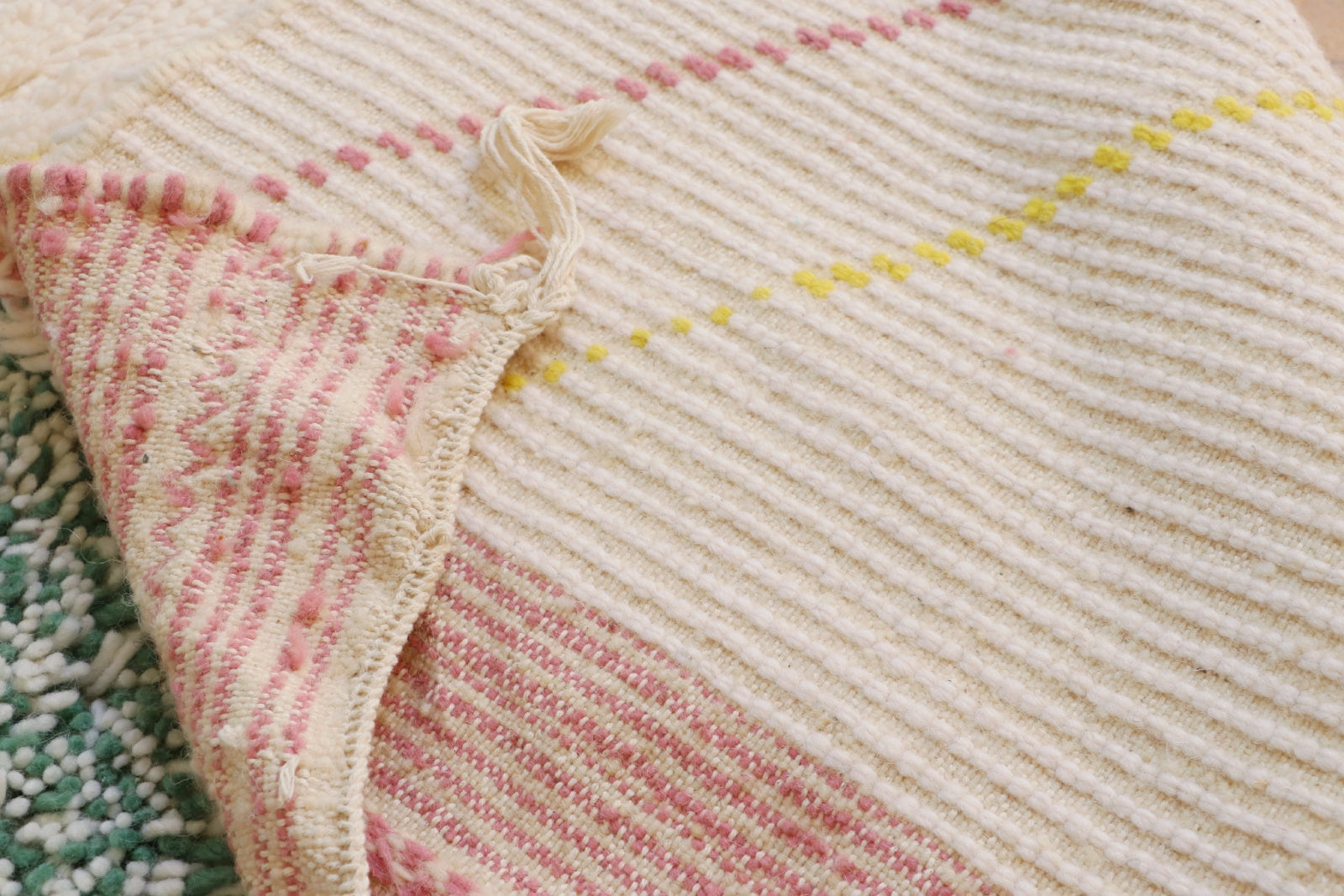 Pflege Wollteppiche (Beni Ourain, Beni Mrirt, Azial): Die Teppiche können ohne rotierende oder klopfende Bürsten abgesaugt werden. Wir empfehlen den Teppich gelegentlich auszuklopfen oder auszuschlagen, das entfernt effektiv Staub und Schmutz und der Teppich sieht wieder wunderbar frisch aus.
