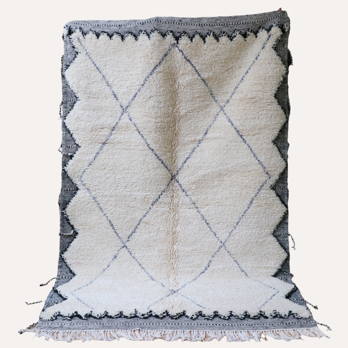 Pflege Wollteppiche (Beni Ourain, Beni Mrirt, Azial): Die Teppiche können ohne rotierende oder klopfende Bürsten abgesaugt werden. Wir empfehlen den Teppich gelegentlich auszuklopfen oder auszuschlagen, das entfernt effektiv Staub und Schmutz und der Teppich sieht wieder wunderbar frisch aus.