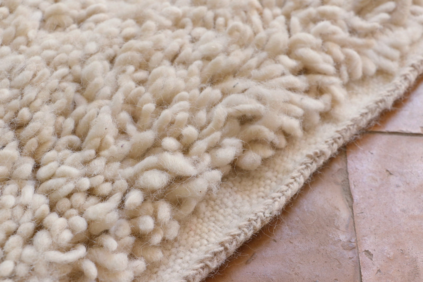 Pflege Wollteppiche (Beni Ourain, Beni Mrirt, Azial): Die Teppiche können ohne rotierende oder klopfende Bürsten abgesaugt werden. Wir empfehlen den Teppich gelegentlich auszuklopfen oder auszuschlagen, das entfernt effektiv Staub und Schmutz und der Teppich sieht wieder wunderbar frisch aus.