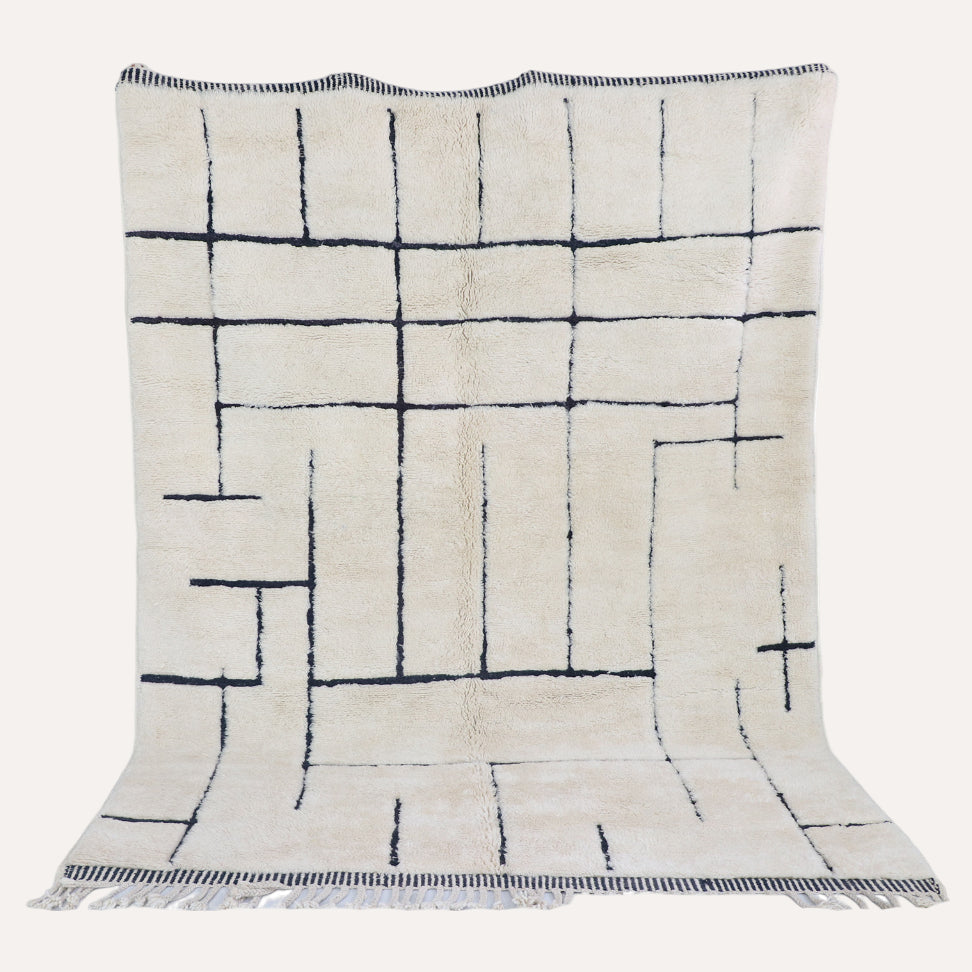 Berberteppich Beni Mrirt Lines ist ein luxuriöser und moderner Berberteppich, der jedes Interieur auf das nächste Level hebt. Er vereint Tradition & Moderne und bringt einen klaren und aufgeräumten Charakter mit in euer Zuhause.